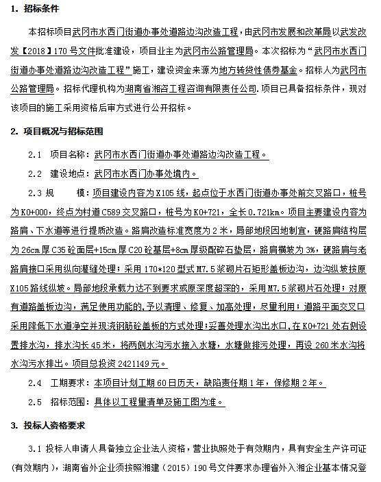 武岡市水西門(mén)街道辦事處道路邊溝改造工程 施工招標(biāo)公告