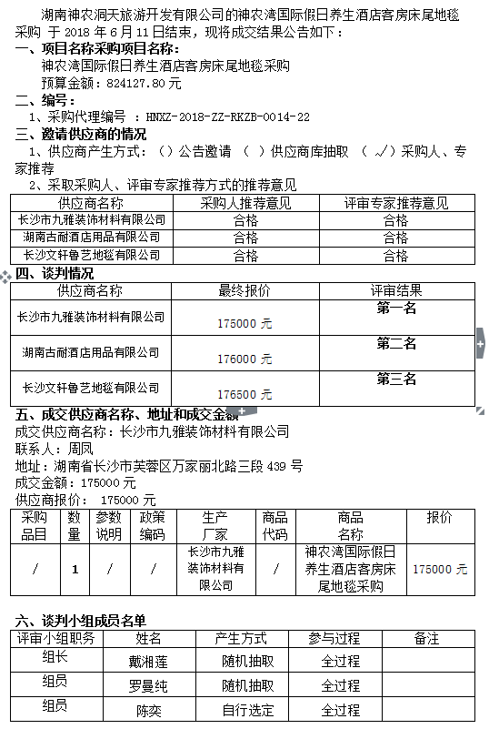 神農(nóng)灣國(guó)際假日養(yǎng)生酒店客房床尾地毯采購(gòu)  競(jìng)爭(zhēng)性談判成交公告