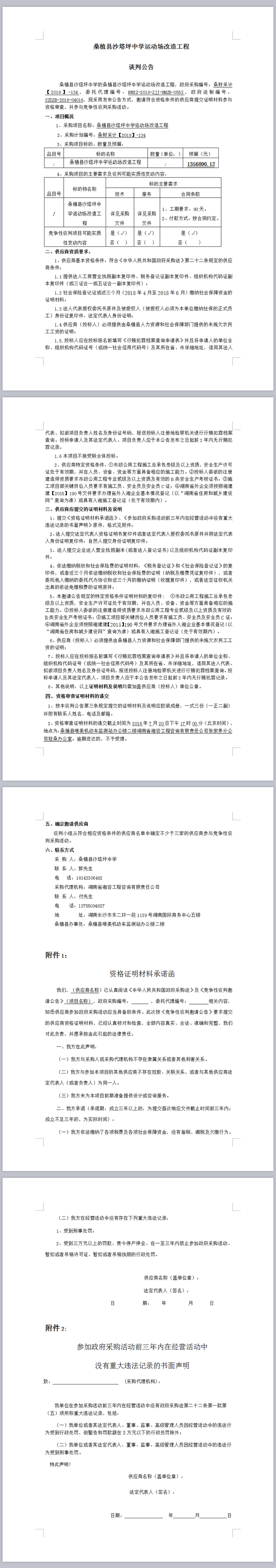 桑植縣沙塔坪中學(xué)運動場改造工程談判公告