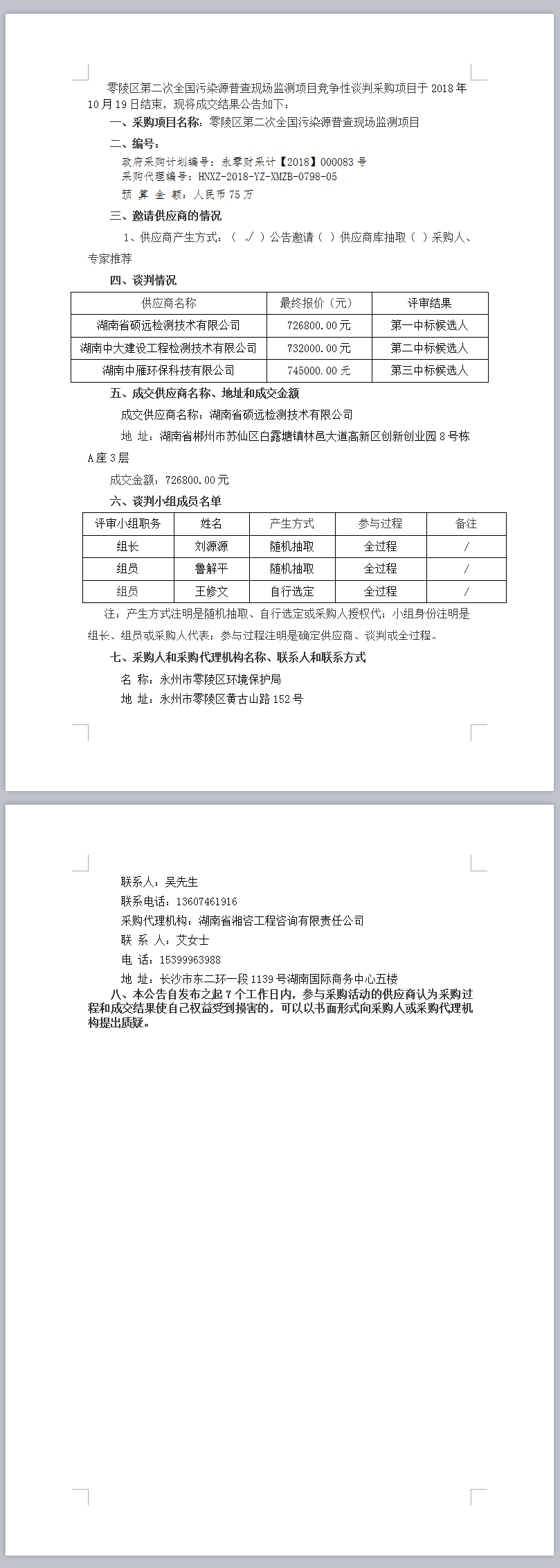 零陵區(qū)第二次全國污染源普查現(xiàn)場監(jiān)測項目競爭性談判成交公告