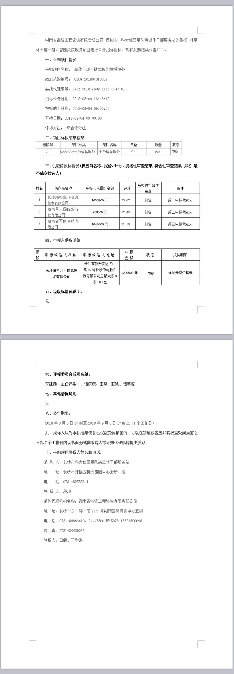 長沙市科大佳園軍隊離退休干部服務站軍休干部一鍵式智能救援服務結果公告