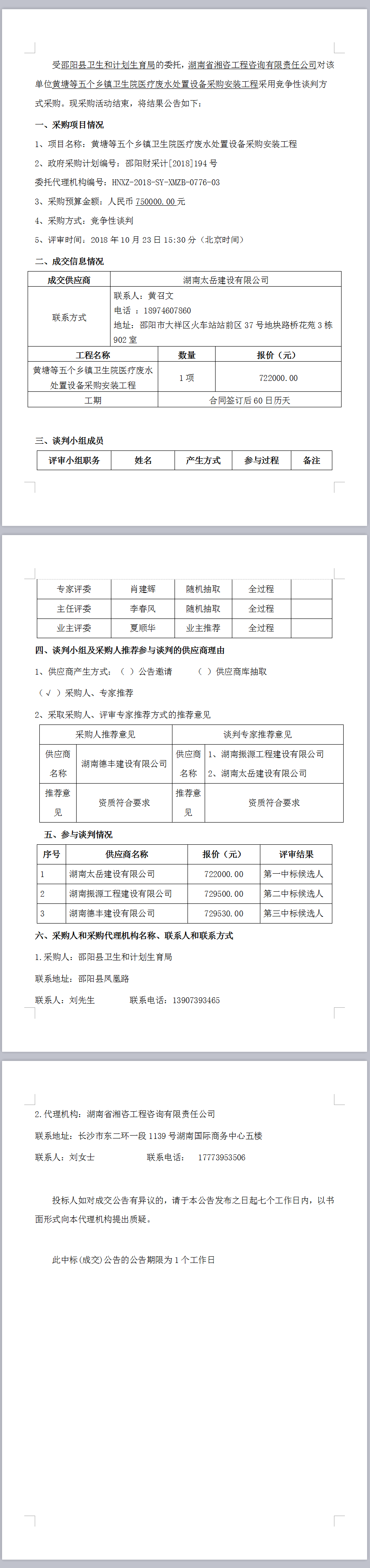 黃塘等五個(gè)鄉(xiāng)鎮(zhèn)衛(wèi)生院醫(yī)療廢水處置設(shè)備采購(gòu)安裝工程談判成交公告