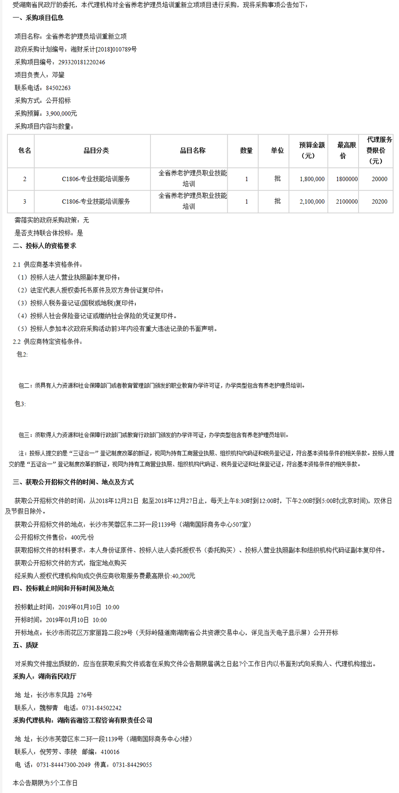 湖南省民政廳全省養(yǎng)老護(hù)理員培訓(xùn)重新立項(xiàng)項(xiàng)目公開招標(biāo)公告