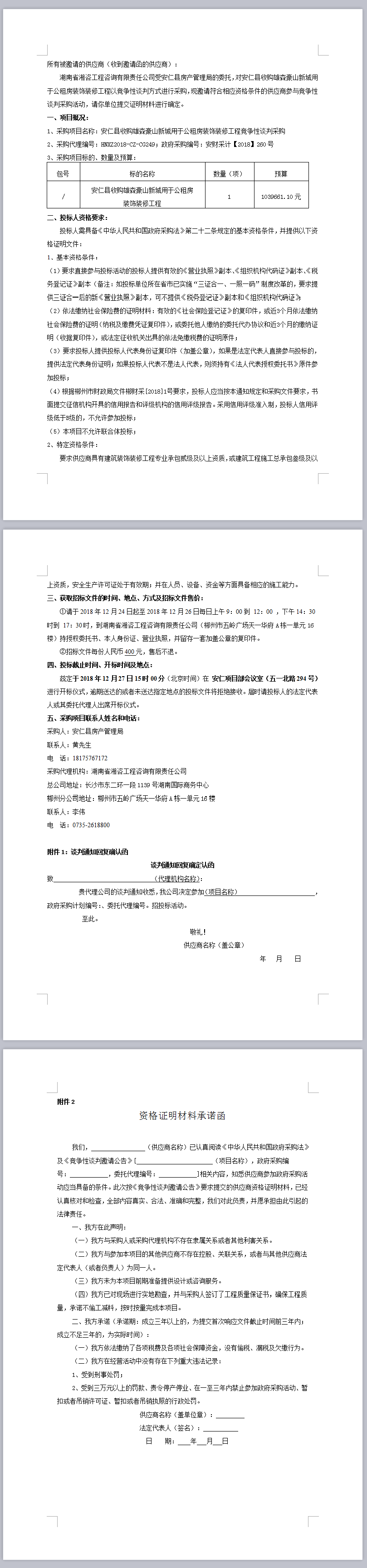 安仁縣收購雄森豪山新城用于公租房裝飾裝修工程競爭性談判采購邀請通知