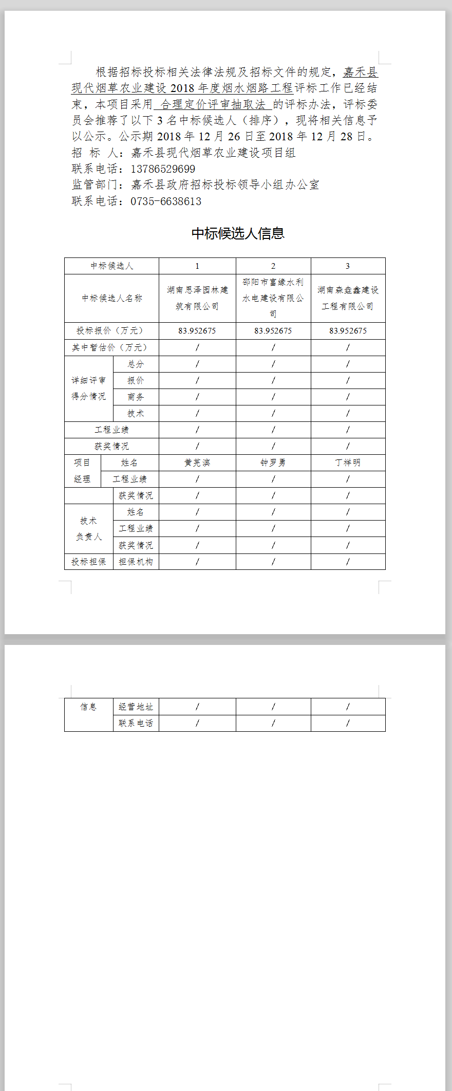 嘉禾縣現(xiàn)代煙草農(nóng)業(yè)建設(shè)2018年度煙水煙路工程中標(biāo)候選人公示