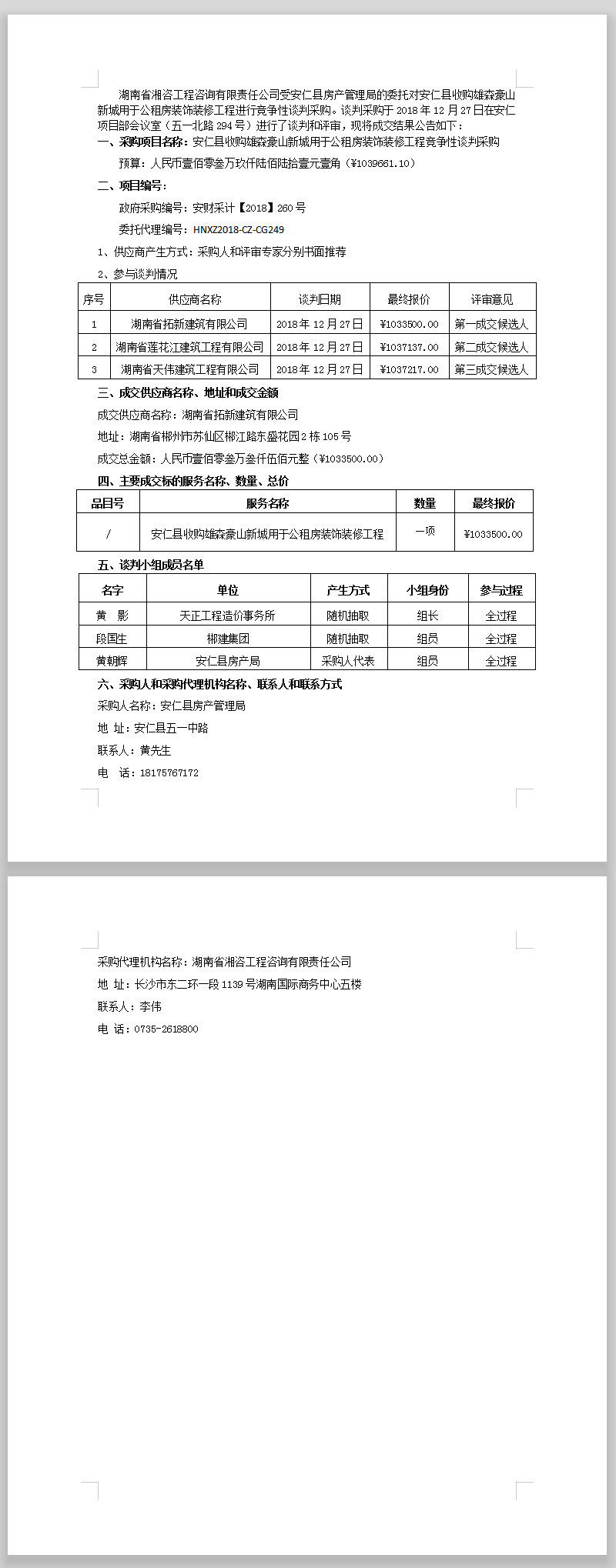 安仁縣收購雄森豪山新城用于公租房裝飾裝修工程 競爭性談判采購成交公告