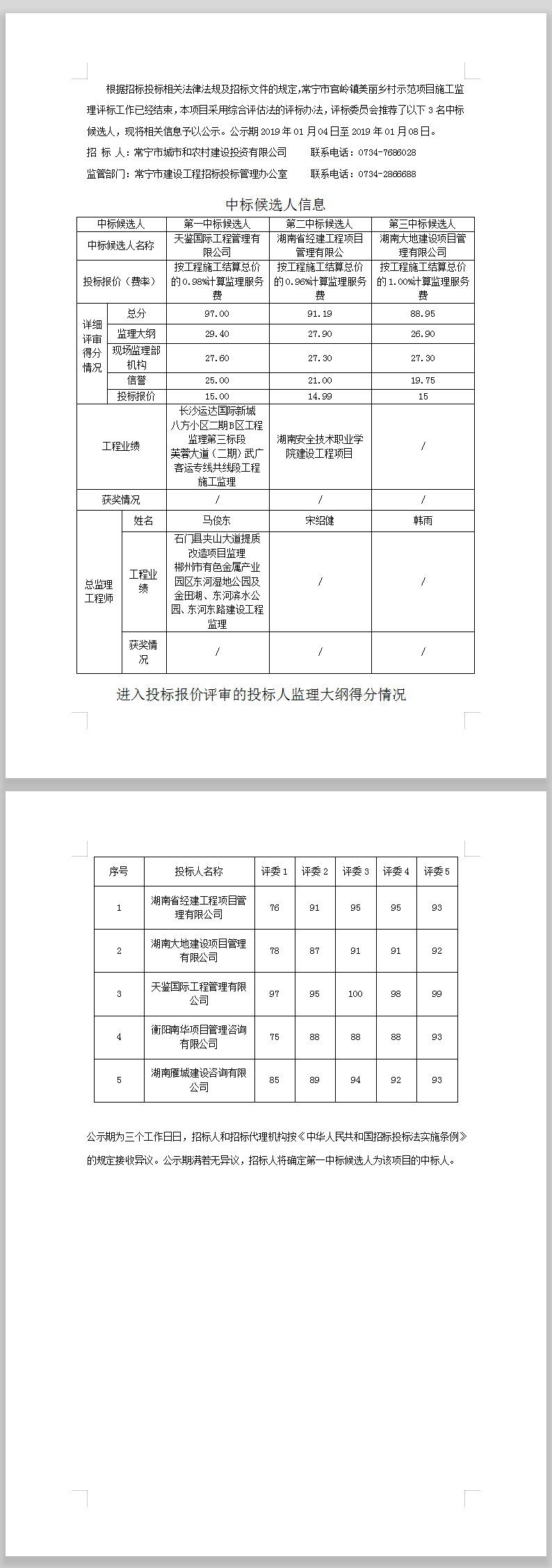 常寧市官嶺鎮(zhèn)美麗鄉(xiāng)村示范項目施工監(jiān)理中標(biāo)候選人公示