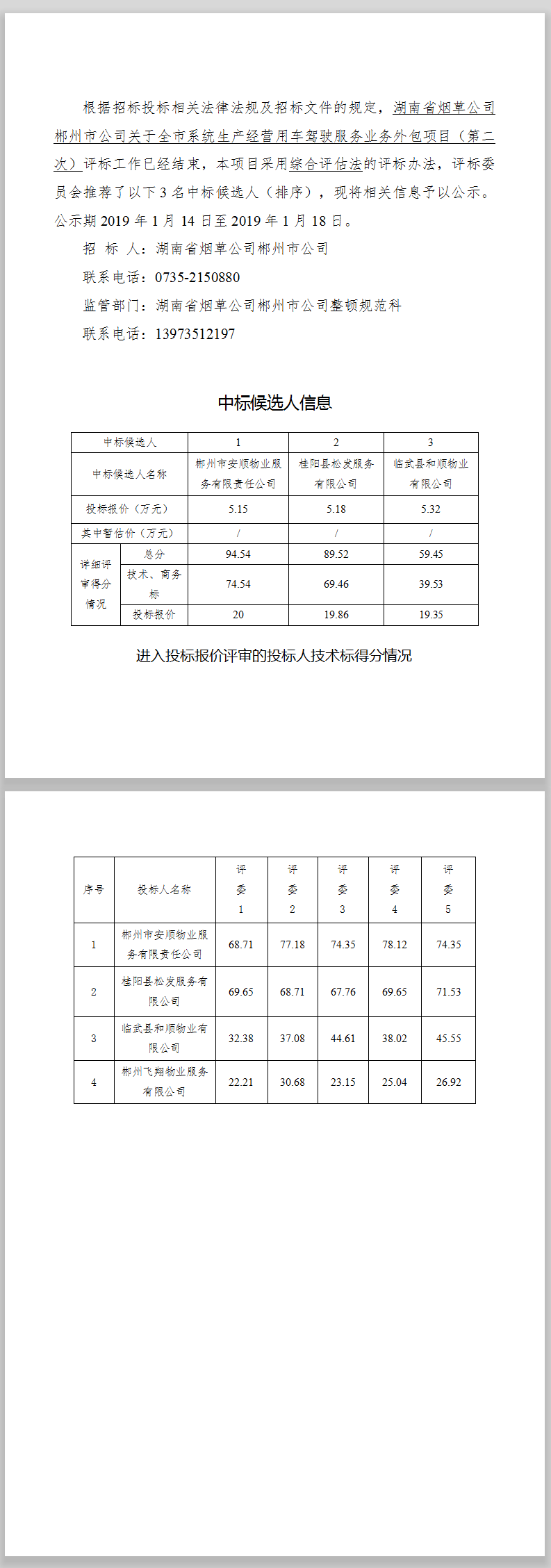 湖南省煙草公司郴州市公司關(guān)于全市系統(tǒng)生產(chǎn)經(jīng)營用車駕駛服務(wù)業(yè)務(wù)外包項目(第二次)中標(biāo)候選人公示