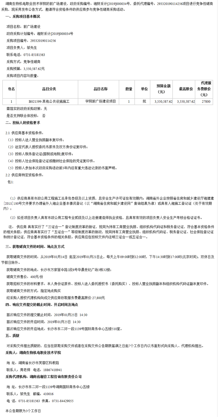 湖南生物機(jī)電職業(yè)技術(shù)學(xué)院前廣場(chǎng)建設(shè)項(xiàng)目競(jìng)爭(zhēng)性磋商邀請(qǐng)公告