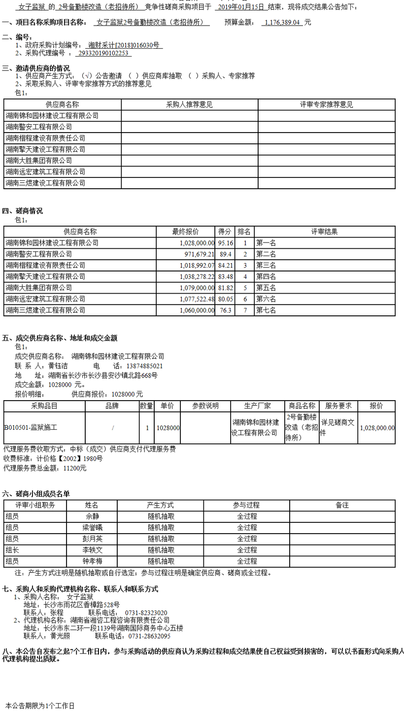 湖南省女子監(jiān)獄2號備勤樓改造(老招待所)工程  項目成交結(jié)果公告