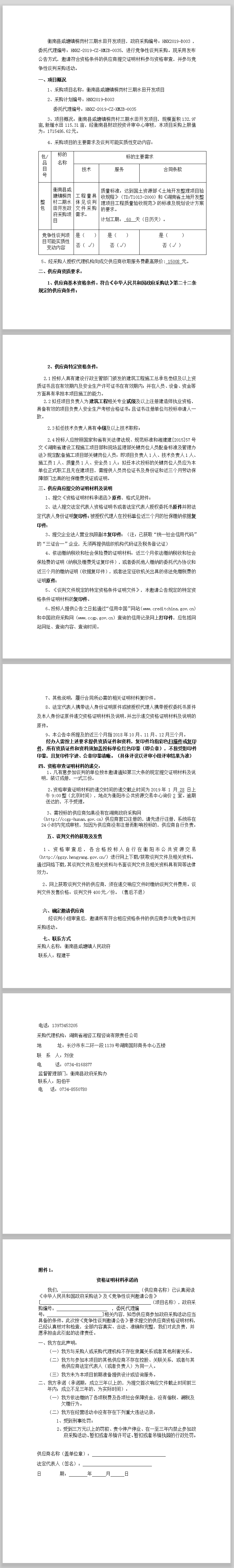 衡南縣咸塘鎮(zhèn)桐崗村三期水田開發(fā)項目談判公告