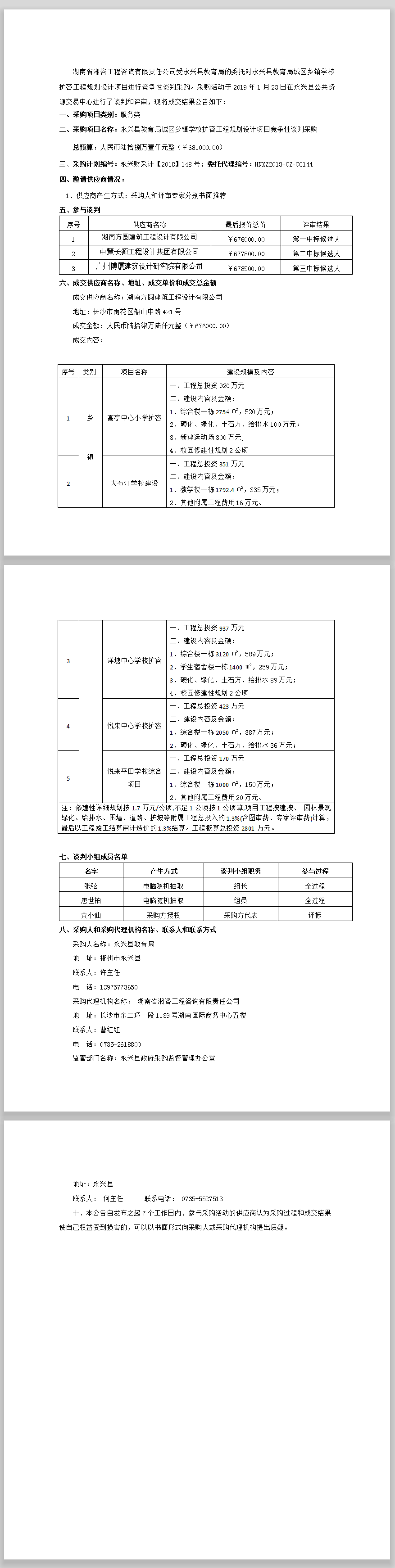 永興縣教育局城區(qū)鄉(xiāng)鎮(zhèn)學校擴容工程規(guī)劃設計項目競爭性談判采購成交公告