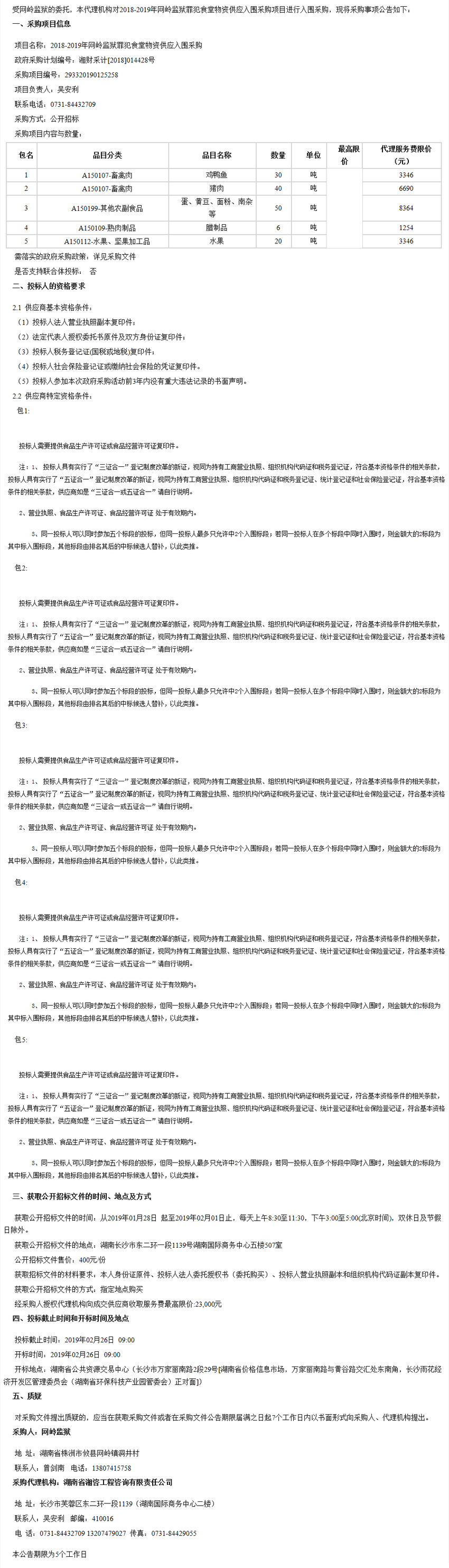 網(wǎng)嶺監(jiān)獄2018-2019年網(wǎng)嶺監(jiān)獄罪犯食堂物資供應入圍采購項目入圍采購公開招標公告
