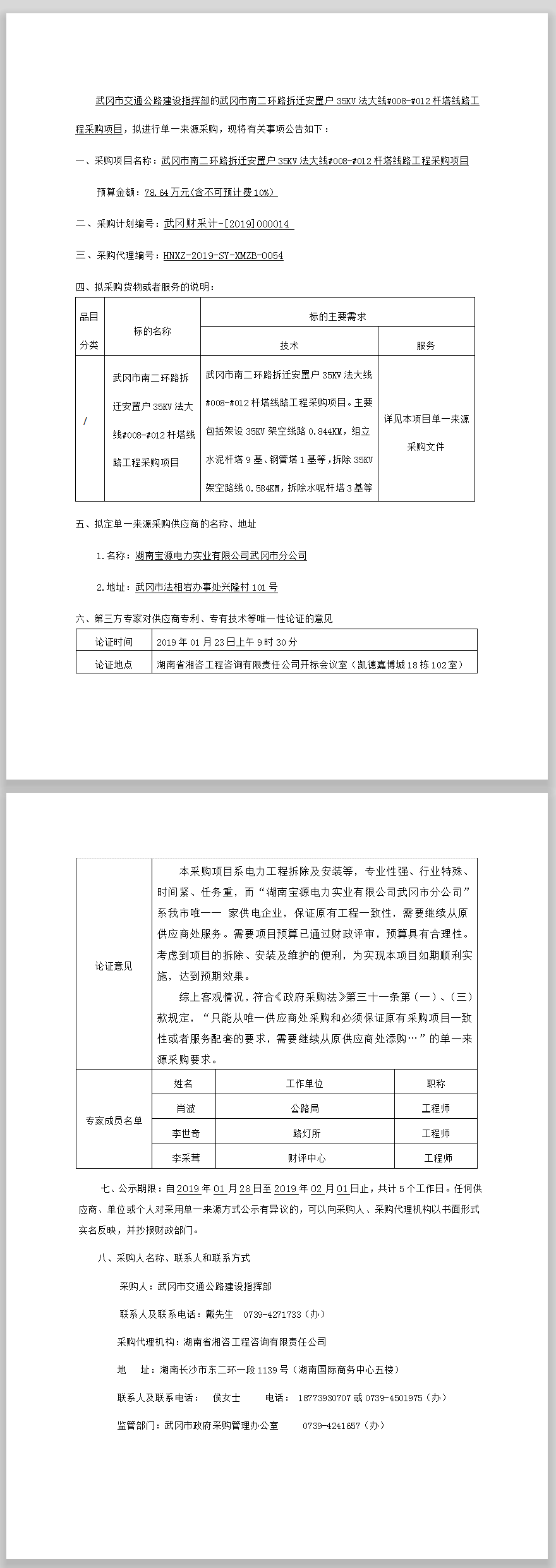 武岡市南二環(huán)路拆遷安置戶35KV法大線#008—#012桿塔線路工程采購項目單一來源采購公示