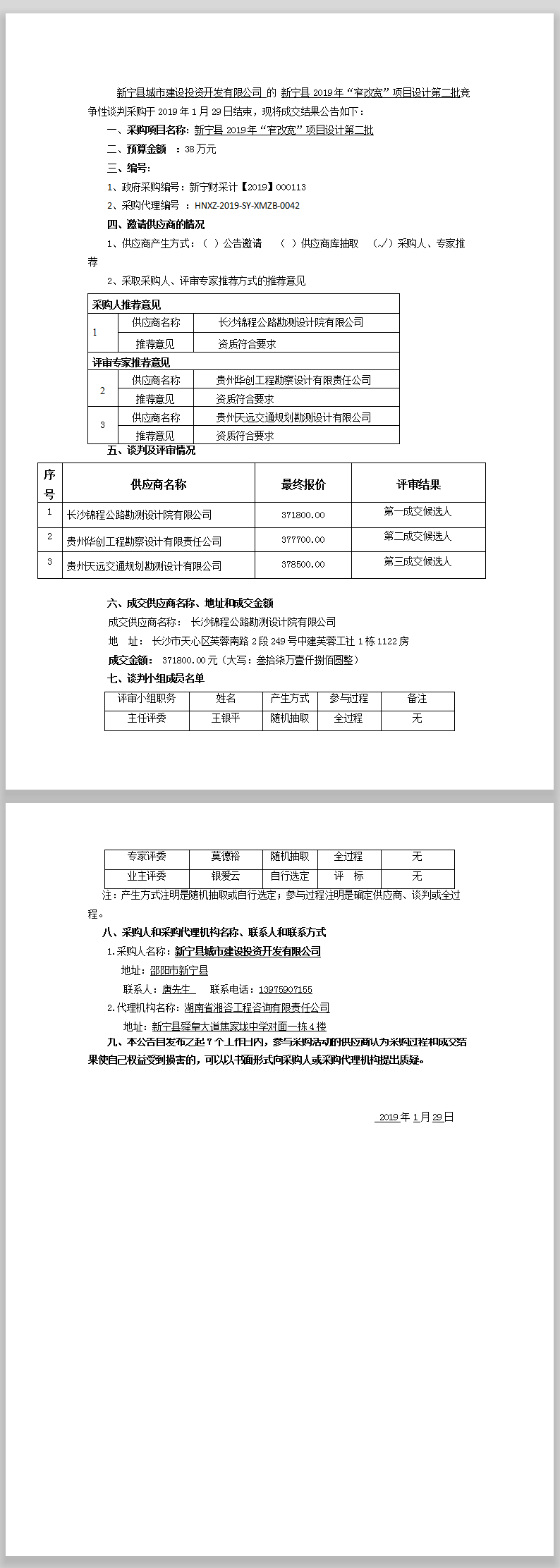 新寧縣2019年“窄改寬”項(xiàng)目設(shè)計(jì)第二批 競(jìng)爭(zhēng)性談判成交結(jié)果公告