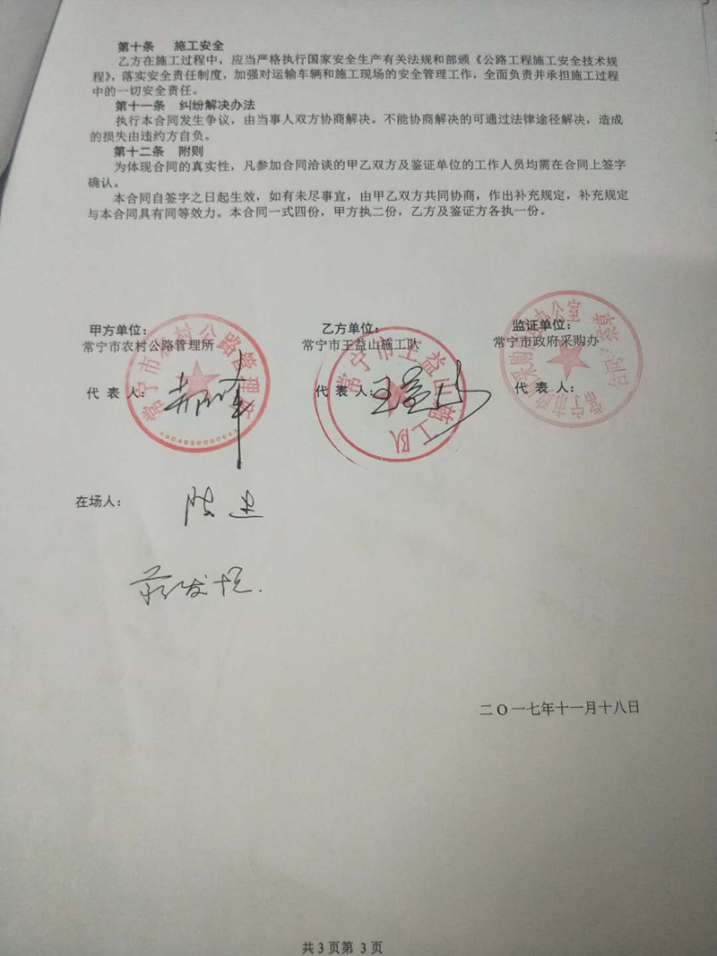 常寧市柏坊鎮(zhèn)東白村C334段新建工程合同公示