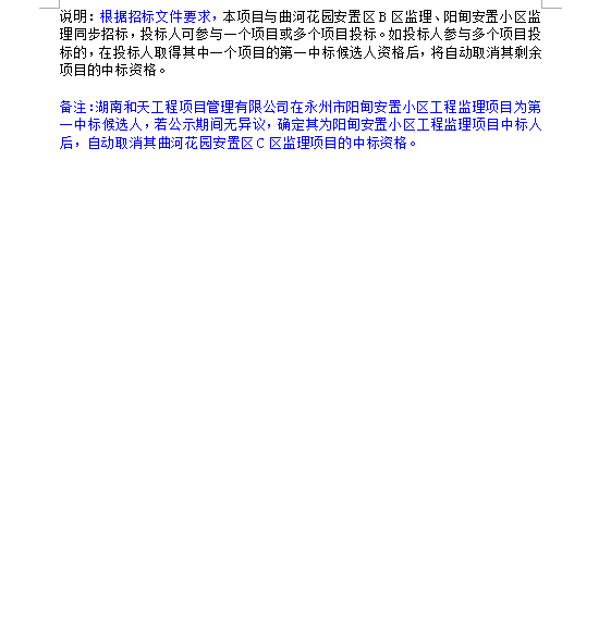永州市曲河花園安置區(qū)C區(qū)工程監(jiān)理中標(biāo)候選人公示