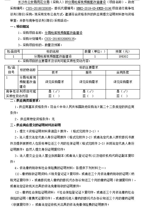 分局槍庫視頻配套改造建設(shè)競爭性談判邀請公告