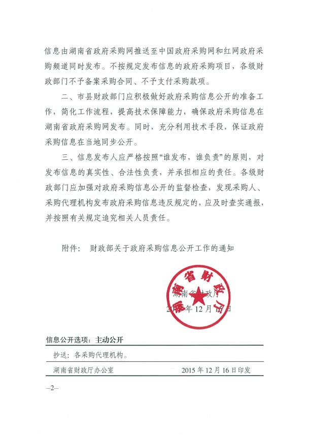 湖南省財政廳轉(zhuǎn)發(fā)財政部關(guān)于做好政府采購信息公開工作的通知