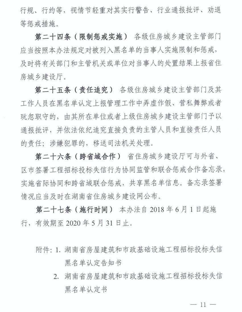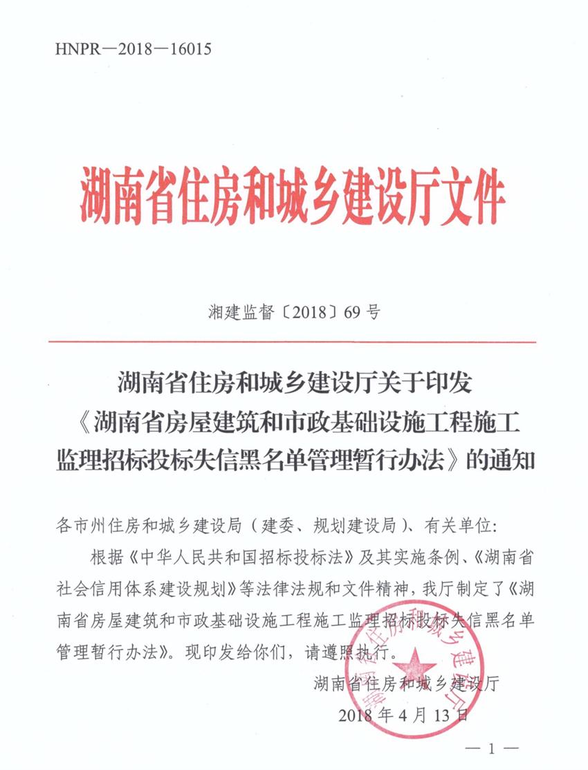 湖南省住房和城鄉(xiāng)建設(shè)廳關(guān)于印發(fā)《湖南省房屋建筑和市政基礎(chǔ)設(shè)施工程施工監(jiān)理招標(biāo)投標(biāo)失信黑名單管理暫行辦法》的通知