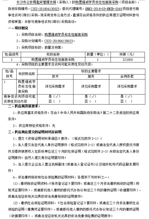 購置強(qiáng)戒學(xué)員標(biāo)志性服裝采購競爭性談判邀請(qǐng)公告
