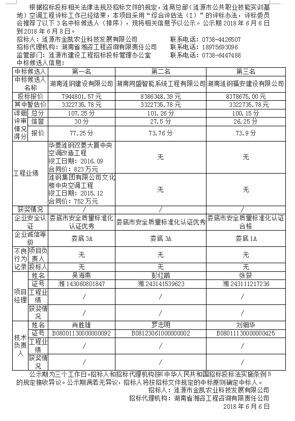 漣商總部(漣源市公共職業(yè)技能實訓基地)空調(diào)工程中標候選人公示