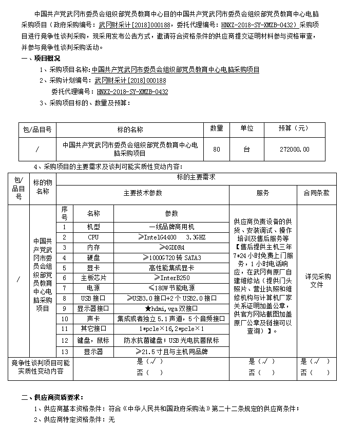 中國共產(chǎn)黨武岡市委員會組織部黨員教育中心電腦采購項目 競爭性談判邀請公告