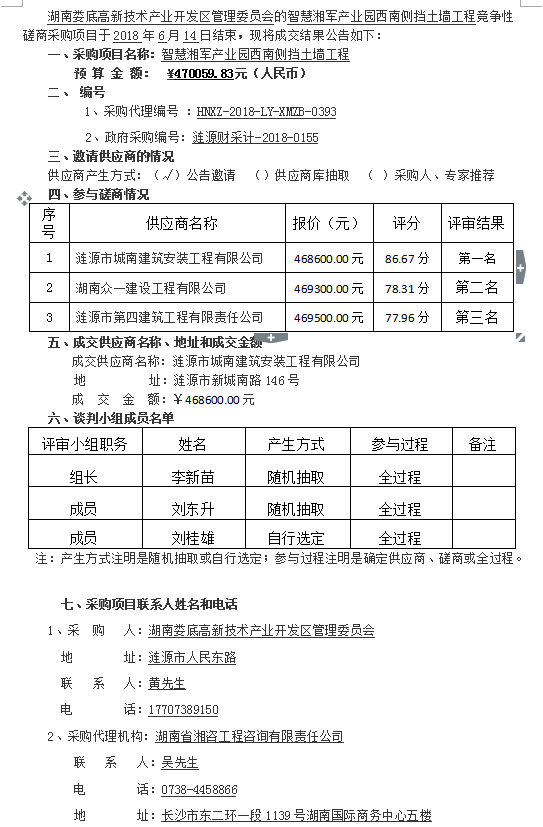 智慧湘軍產(chǎn)業(yè)園西南側(cè)擋土墻工程 競爭性磋商成交結(jié)果公告