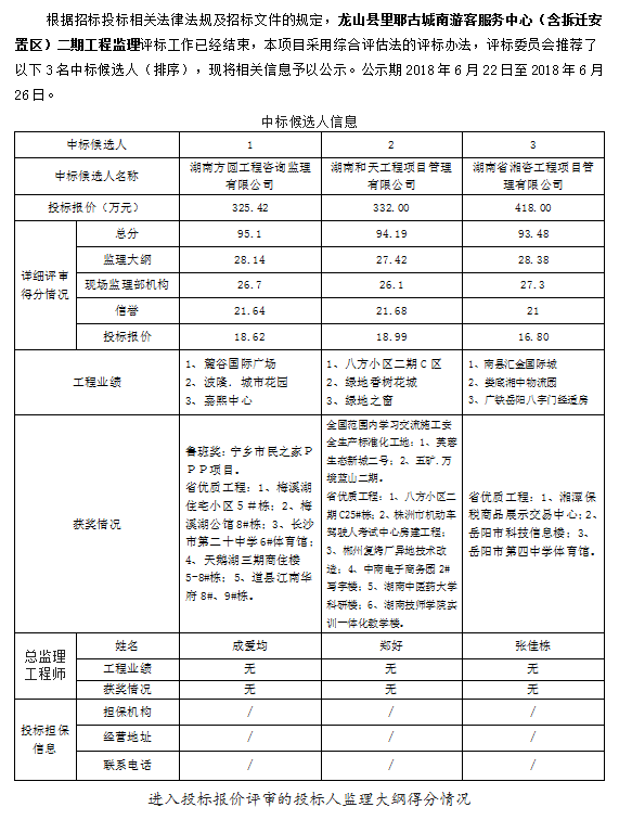 龍山縣里耶古城南游客服務(wù)中心(含拆遷安置區(qū))二期工程監(jiān)理 招標投標信息公示表