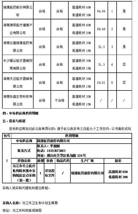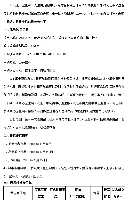 江市公立醫(yī)療機(jī)構(gòu)耗材集中采購(gòu)配送定點(diǎn)采購(gòu)(第一批)公開招標(biāo)中標(biāo)公告