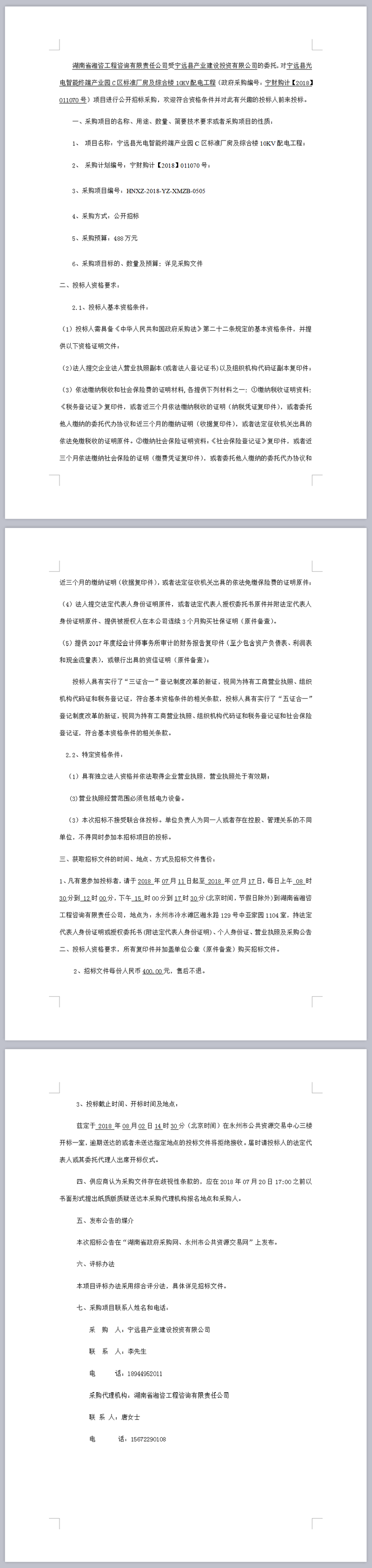 寧遠縣光電智能終端產(chǎn)業(yè)園C區(qū)標準廠房及綜合樓10KV配電工程采購項目公開招標公告