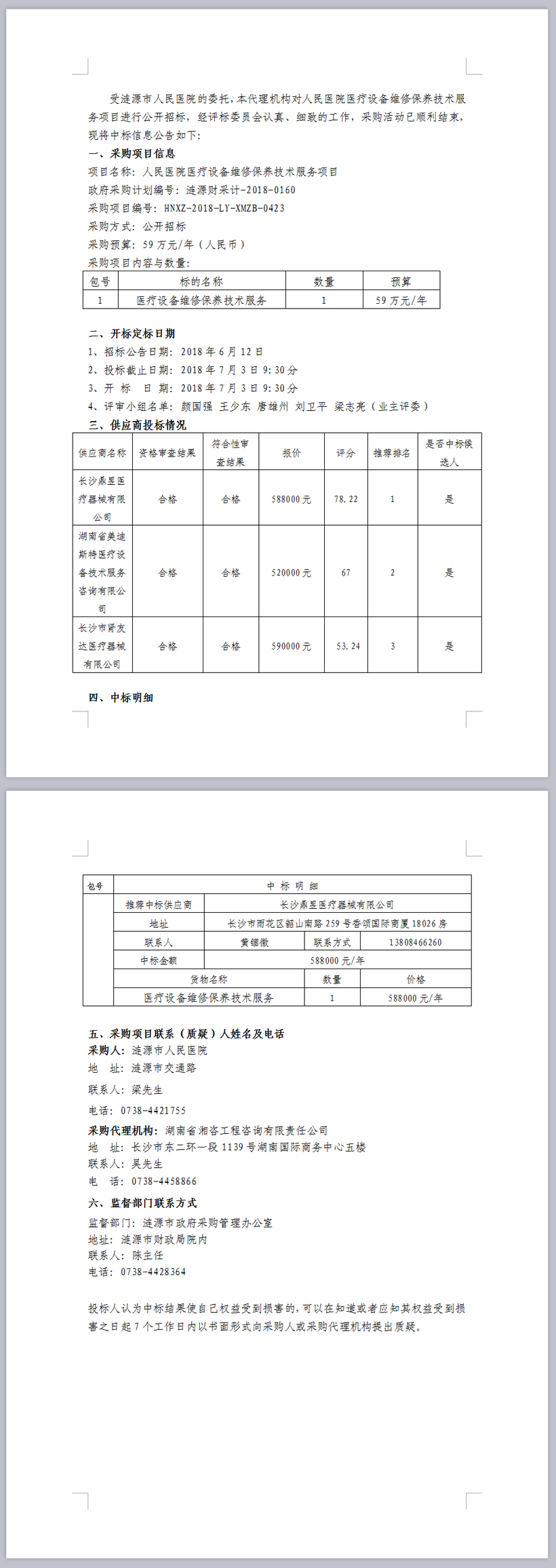 人民醫(yī)院醫(yī)療設(shè)備維修保養(yǎng)技術(shù)服務(wù)項目中標(biāo)結(jié)果公告