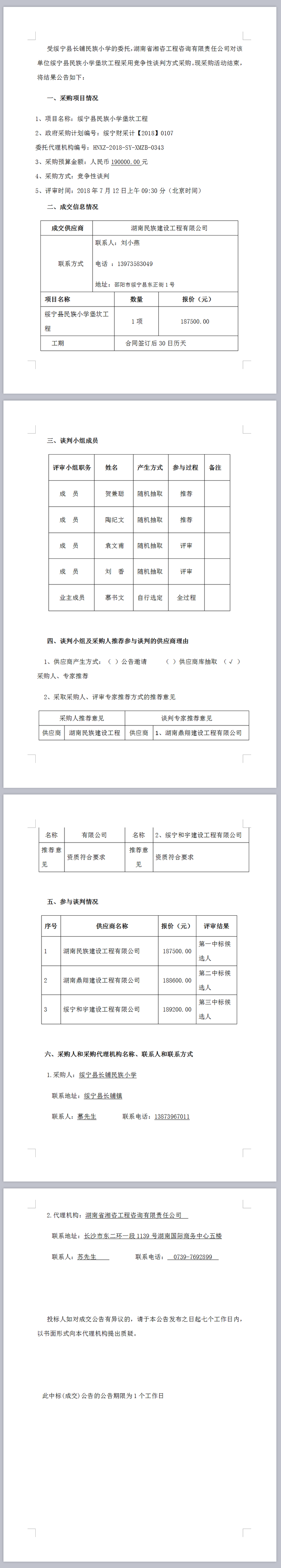 綏寧縣民族小學(xué)堡坎工程談判成交公告