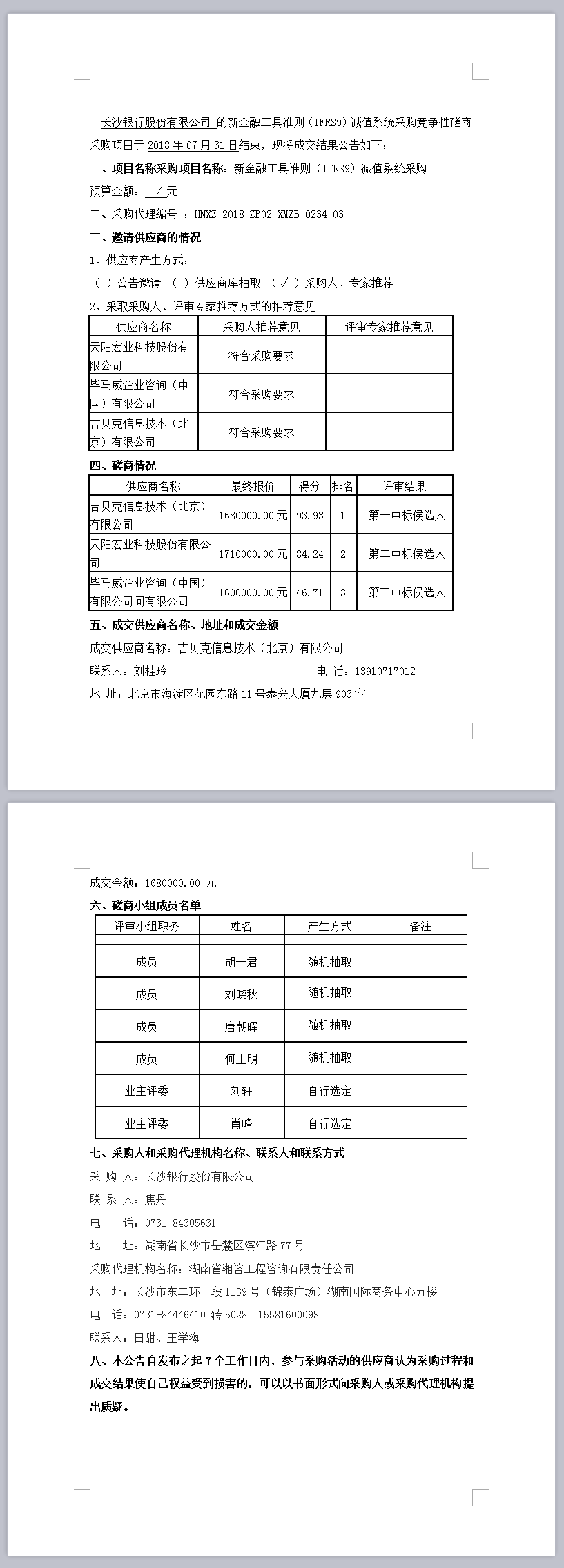 新金融工具準則(IFRS9)減值系統(tǒng)采購競爭性磋商成交公告
