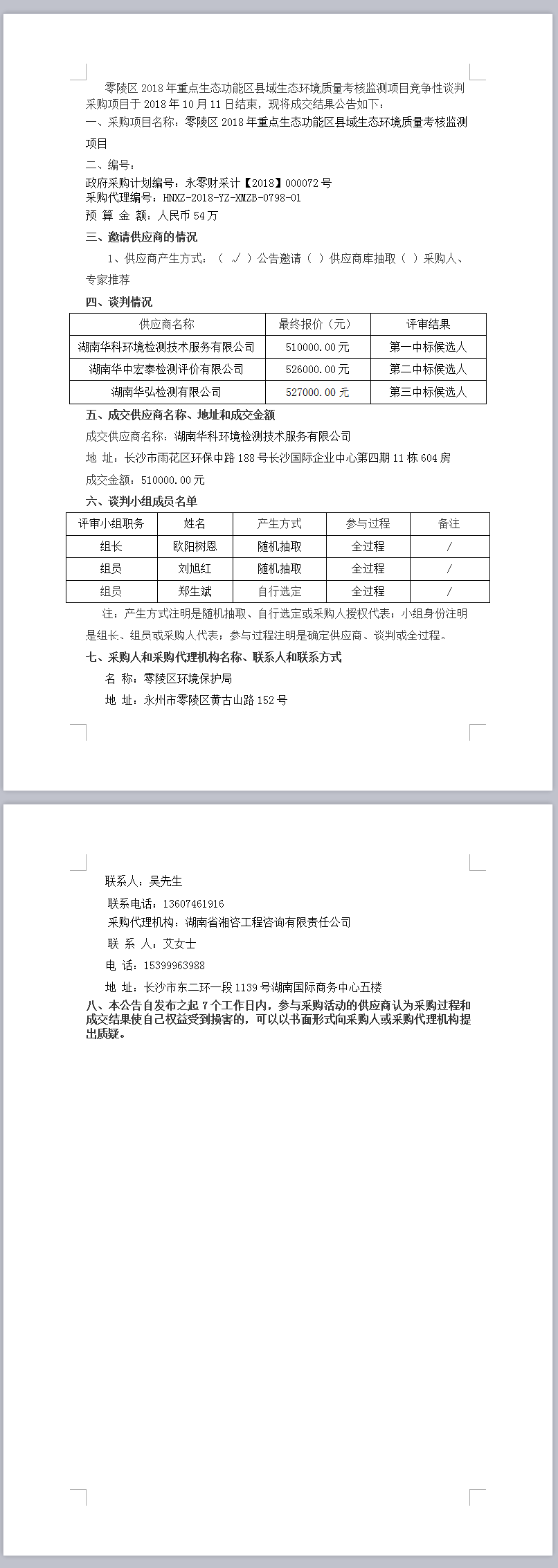 零陵區(qū)2018年重點(diǎn)生態(tài)功能區(qū)縣域生態(tài)環(huán)境質(zhì)量考核監(jiān)測(cè)項(xiàng)目 競(jìng)爭(zhēng)性談判成交公告