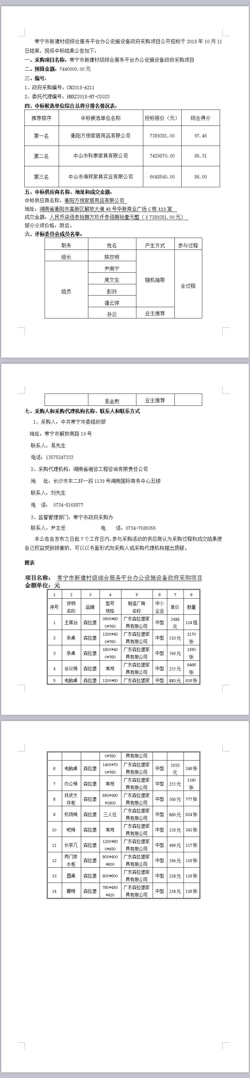 常寧市新建村級(jí)綜合服務(wù)平臺(tái)辦公設(shè)施設(shè)備政府采購項(xiàng)目公開招標(biāo)中標(biāo)公告