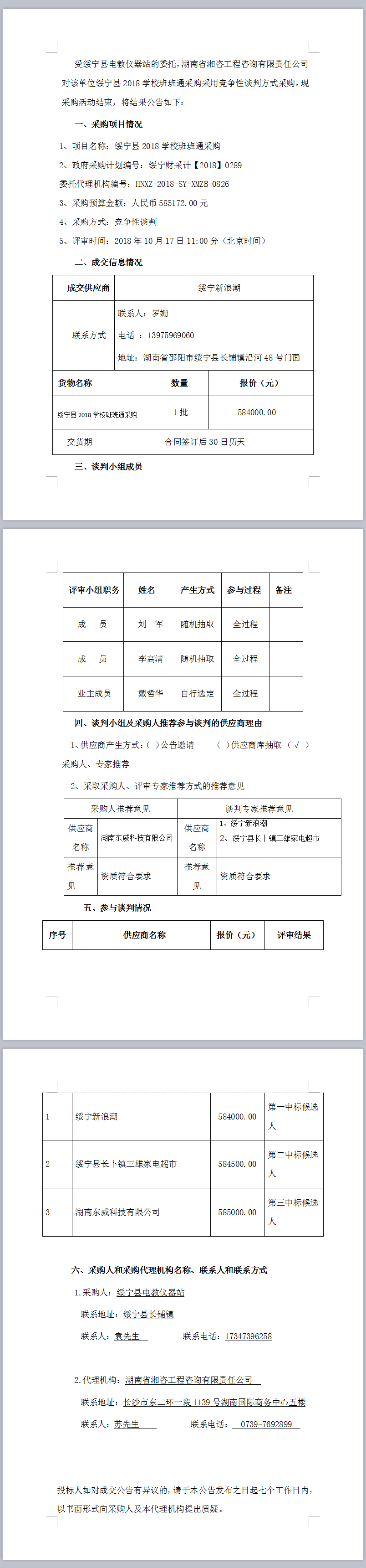 綏寧縣2018學(xué)校班班通采購談判成交公告