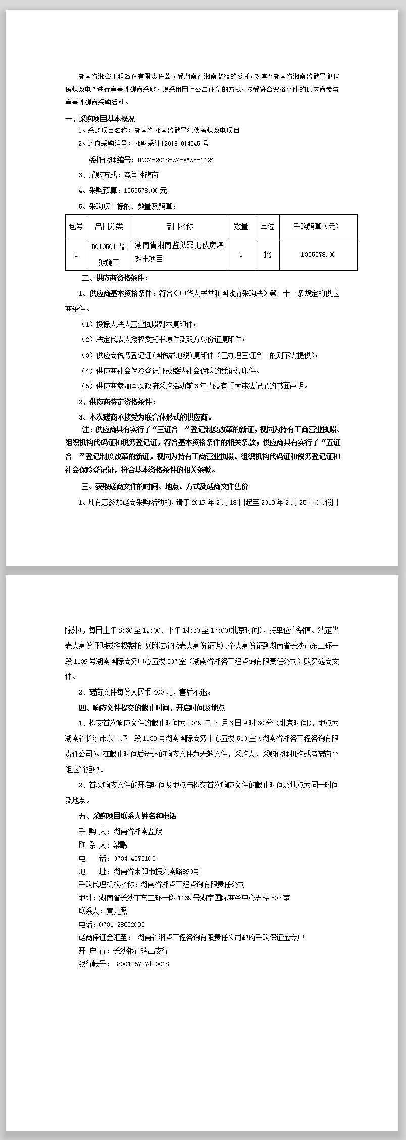 湖南省湘南監(jiān)獄罪犯伙房煤改電項(xiàng)目磋商邀請