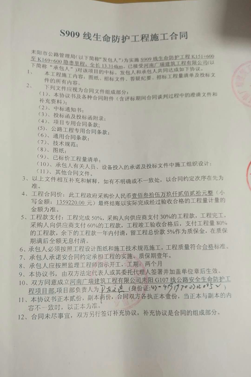 耒陽市S909線公路安全生命防護工程競爭性談判采購合同公告