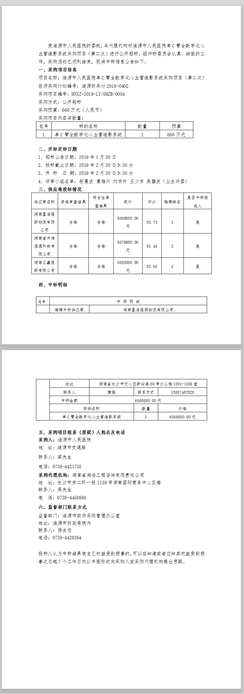 漣源市人民醫(yī)院單C臂全數(shù)字化心血管造影系統(tǒng)采購項(xiàng)目(第二次)中標(biāo)結(jié)果公告