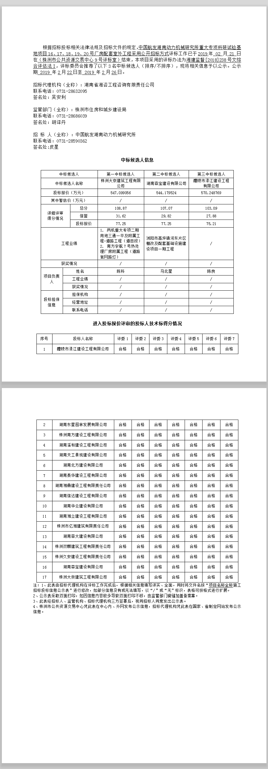 中國航發(fā)湖南動力機(jī)械研究所重大專項科研試驗基地項目16、17、18、19、20號廠房配套室外工程招標(biāo)投標(biāo)信息公示表