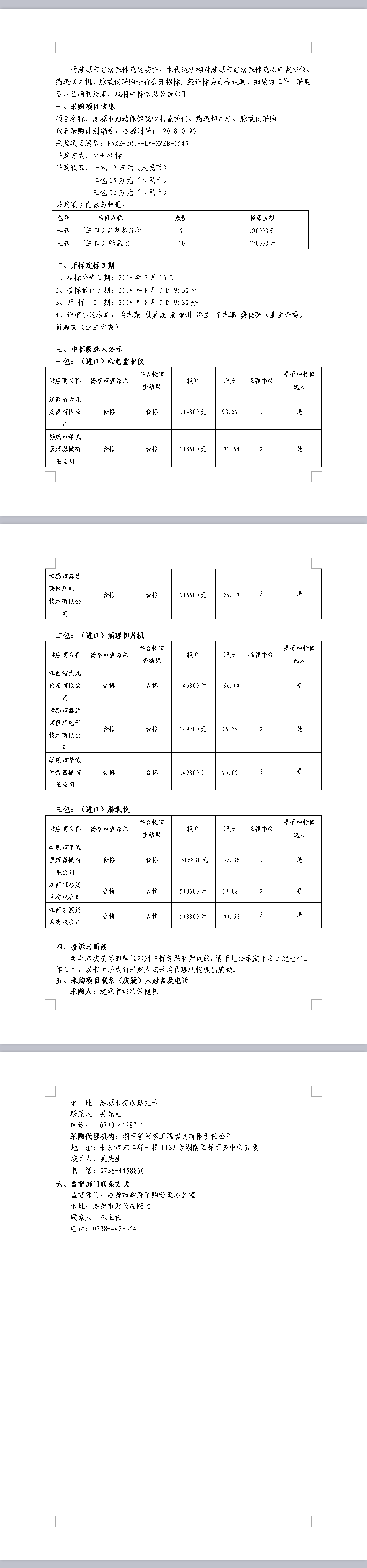 漣源市婦幼保健院心電監(jiān)護(hù)儀、病理切片機(jī)、脈氧儀采購 中標(biāo)結(jié)果公告