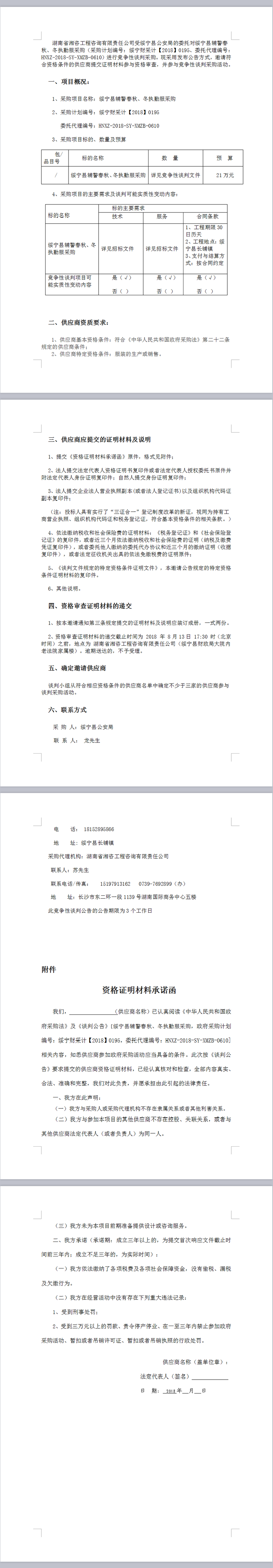 綏寧縣輔警春秋、冬執(zhí)勤服采購談判公告