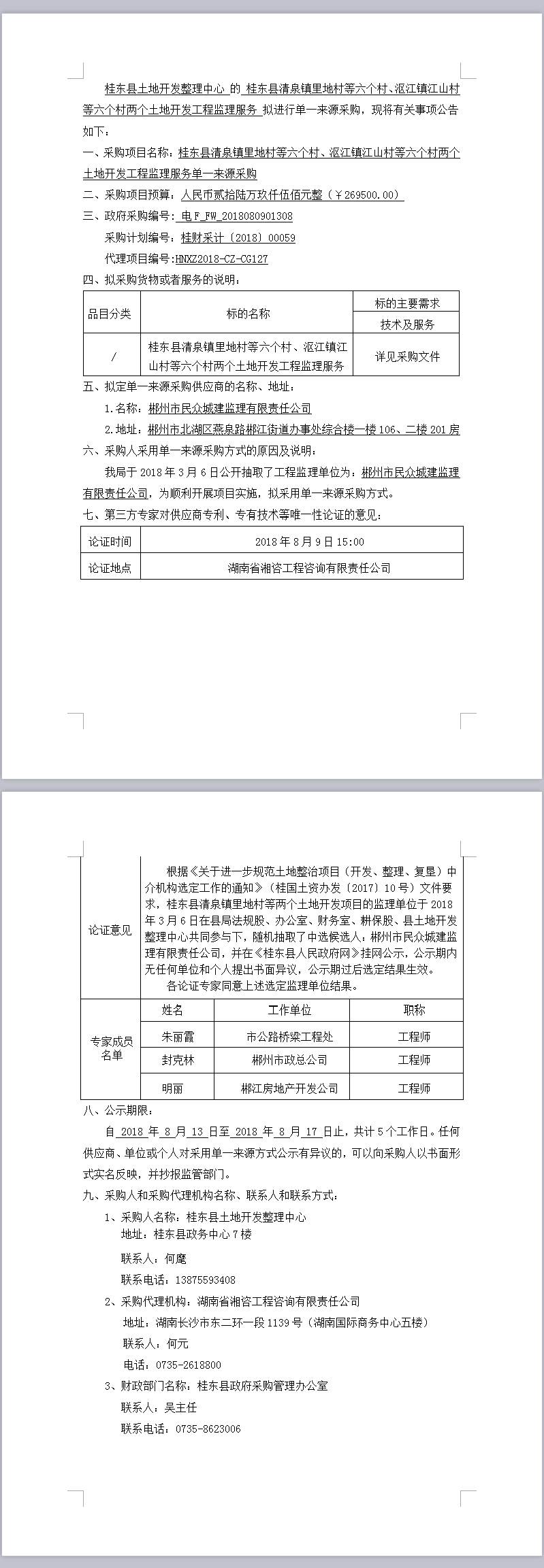 桂東縣清泉鎮(zhèn)里地村等六個村、漚江鎮(zhèn)江山村等六個村兩個土地開發(fā)工程監(jiān)理服務單一來源采購公示