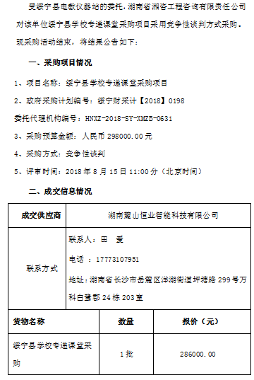 綏寧縣學(xué)校專遞課堂采購項目談判成交公告