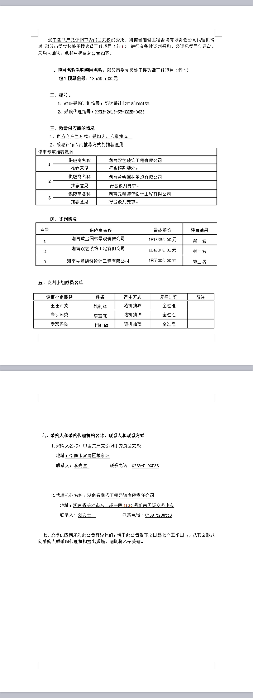 邵陽市委黨校處干樓改造工程項目(包1)競爭性談判成交公告