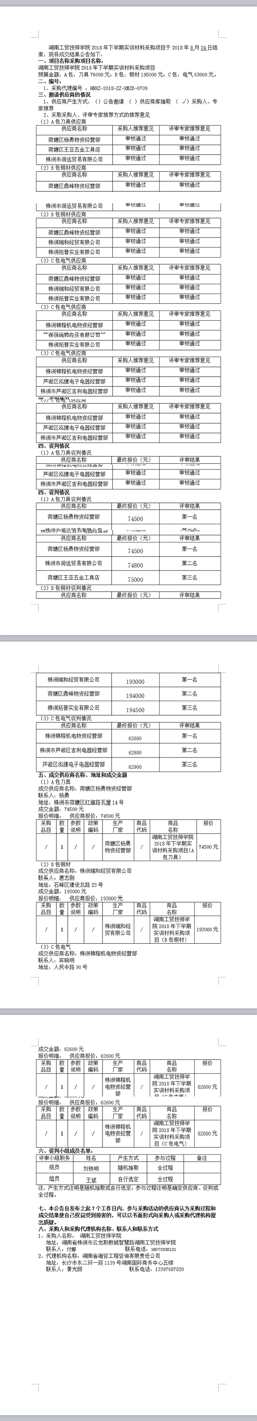 湖南工貿(mào)技師學(xué)院2018年下學(xué)期實(shí)訓(xùn)材料采購項(xiàng)目競爭性談判成交公告