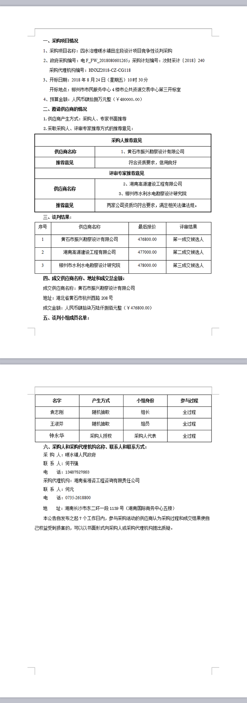四水治理暖水鎮(zhèn)田莊段設(shè)計(jì)項(xiàng)目競爭性談判采購成交公告