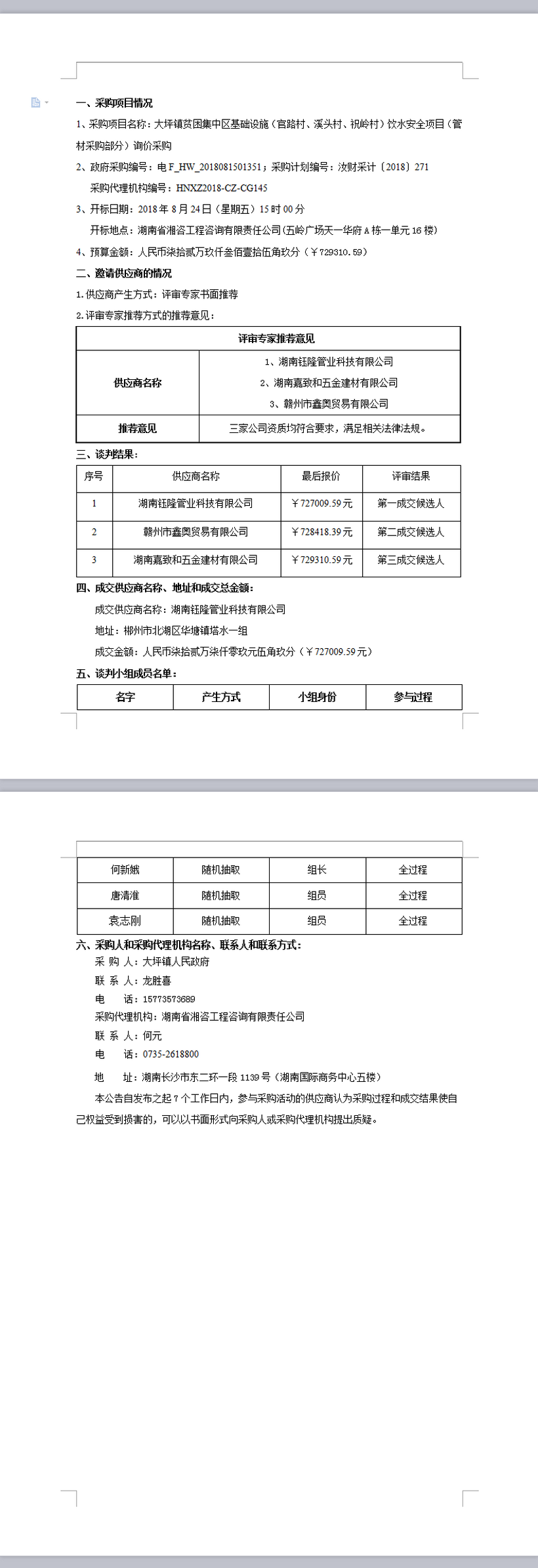 大坪鎮(zhèn)貧困集中區(qū)基礎設施(官路村、溪頭村、祝嶺村)飲水安全項目(管材采購部分)詢價采購成交公告