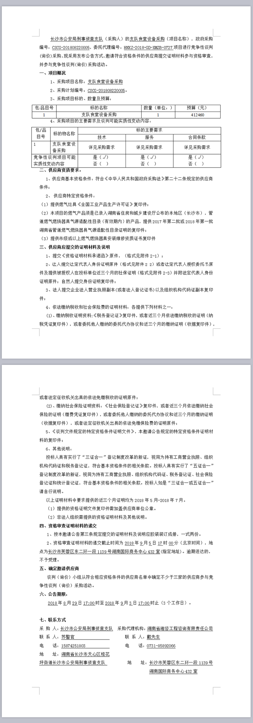 長(zhǎng)沙市公安局刑事偵查支隊(duì)支隊(duì)食堂設(shè)備采購(gòu)競(jìng)爭(zhēng)性談判邀請(qǐng)公告